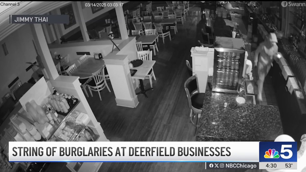 In their release, Deerfield police acknowledged the burglaries followed the “same pattern” in other recent North Shore incidents, saying “the offenders spend a brief amount of time inside the businesses and appear to be searching for cash.”