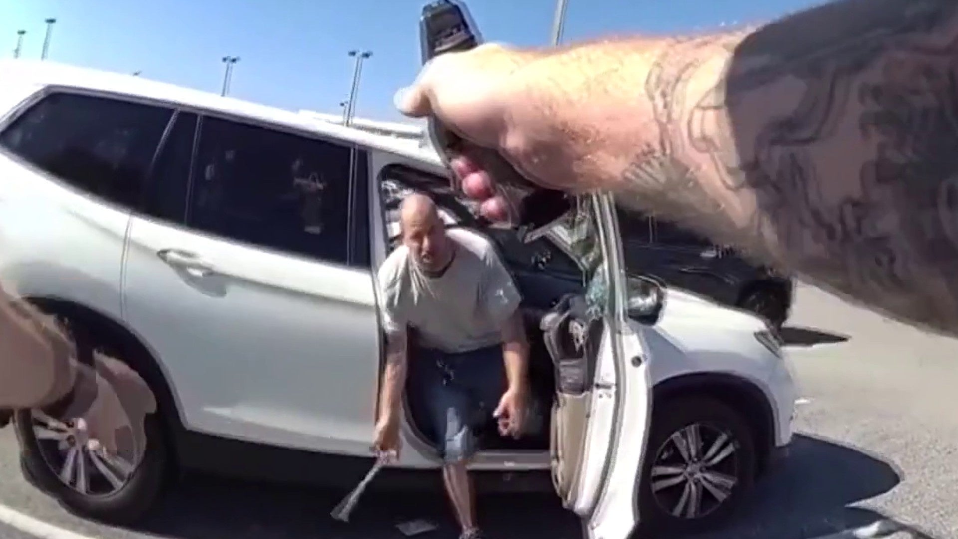 In a release, deputies said that the man — identified as Justin Allen, 37 — was seen breaking into the SUV at the parking lot in Ormond-by-the-Sea before smashing it with the hammer.