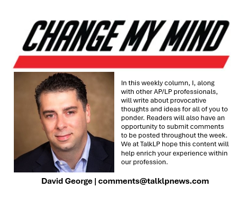 In this weekly column, I, along with other AP/LP professionals, will write about provocative thoughts and ideas for all of you to ponder. Readers will also have an opportunity to submit comments to be posted throughout the week. We at TalkLP hope this content will help enrich your experience within our profession.
